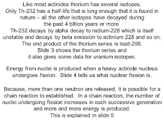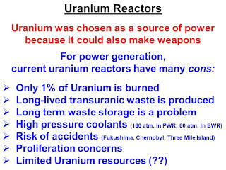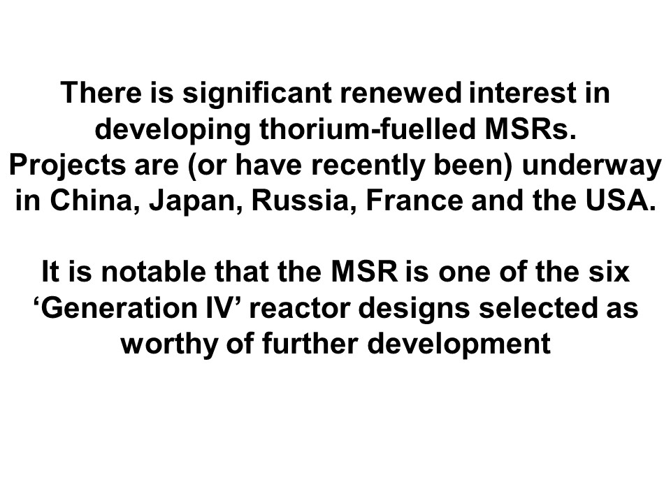 There is renewed interest in thorium, it is more abundant than uranium and U-235, the useful isotope, is only 0.72% of total uranium. So thorium as fuel is much cheaper and there are many positive aspects to energy generation from thorium.