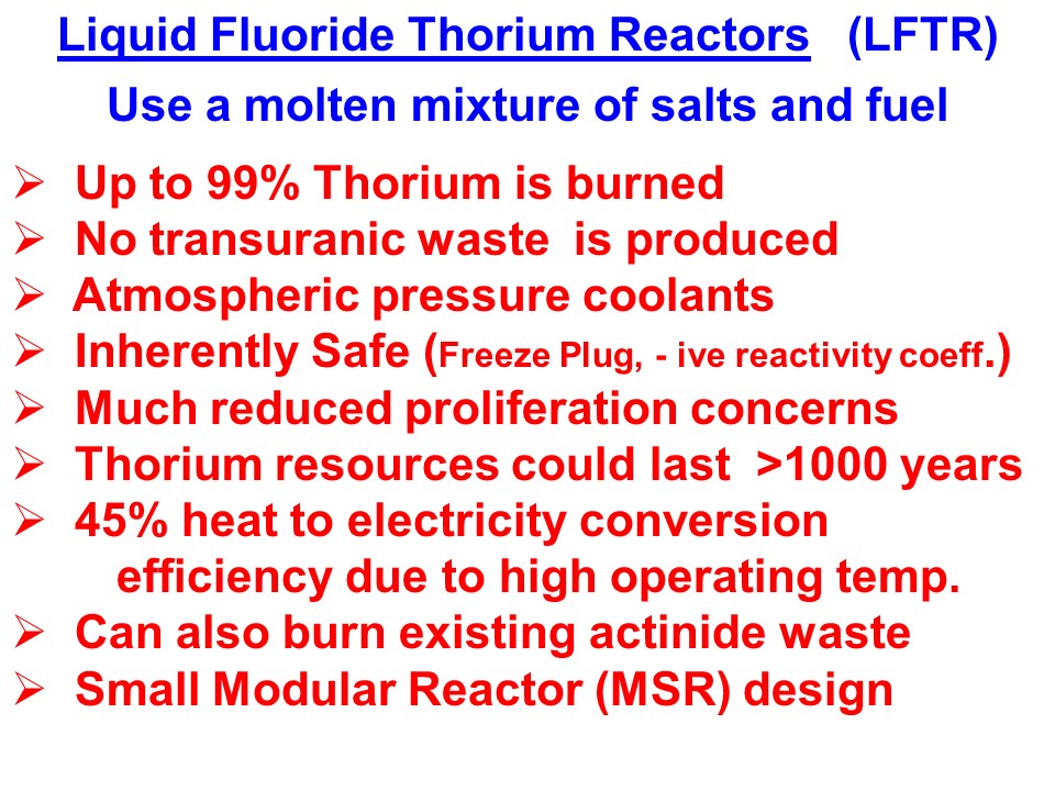 A useful reference on this subject is http://www.huffingtonpost.com/victor-stenger/lftr-a-longterm-.energy-so_b_1192584.html LFTR: