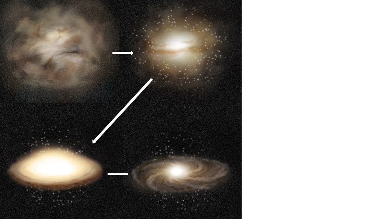 The next slide shows a 2016 study of the time of star formation in different regions of the disk of the Milky Way. Over 70000 red-giant ages are plotted to show that star formation started near the centre of the disk and spread to outer regions of the disk.