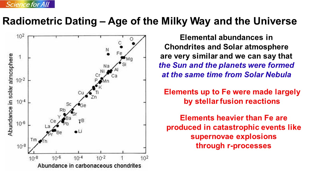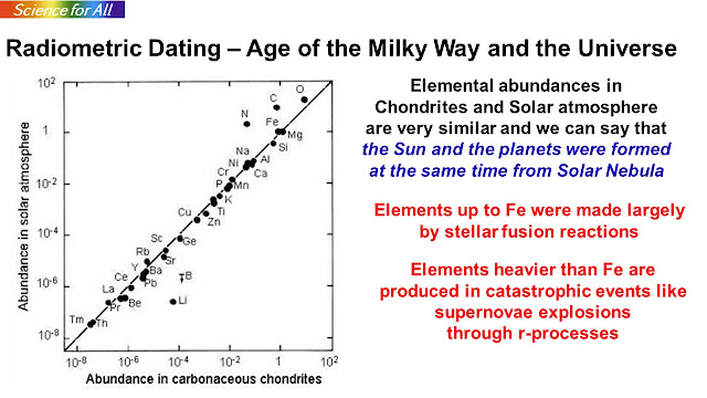 In previous blogs, I had discussed the use of the radio-isotope dating method for determining the age of the Solar System (and hence of the age of the Earth) and also the age of the Oceanic Crust which established the theory of Plate Tectonics (Continental Drift) on a firm footing. Radio-isotope dating has really helped geologists in their struggle to understand the history and structure of the earth. Radio-isotope Dating (RD) can also be used to provide an age of our galaxy, the Milky Way.