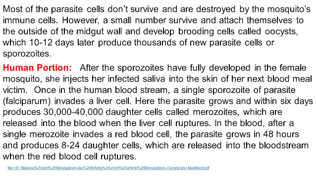 Looking Forward: GM mosquitoes, as described above, hold great promise for controlling malaria. GM is species specific and targets only the vector population leaving other mosquito species totally unaffected. There is disquiet about releasing GM species in the wild as one can not predict with absolute certainty how it will affect the rest of the biosphere. In the case of RIDL GM mosquitoes, they die after a few weeks and the GM genes die with them.