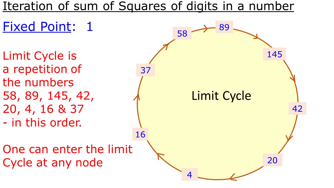 This simply means that further iterations will repeat the sequence from S2 to S10 - indefinitely. Sad numbers are trapped in a cycle - let us call it a limit cycle.